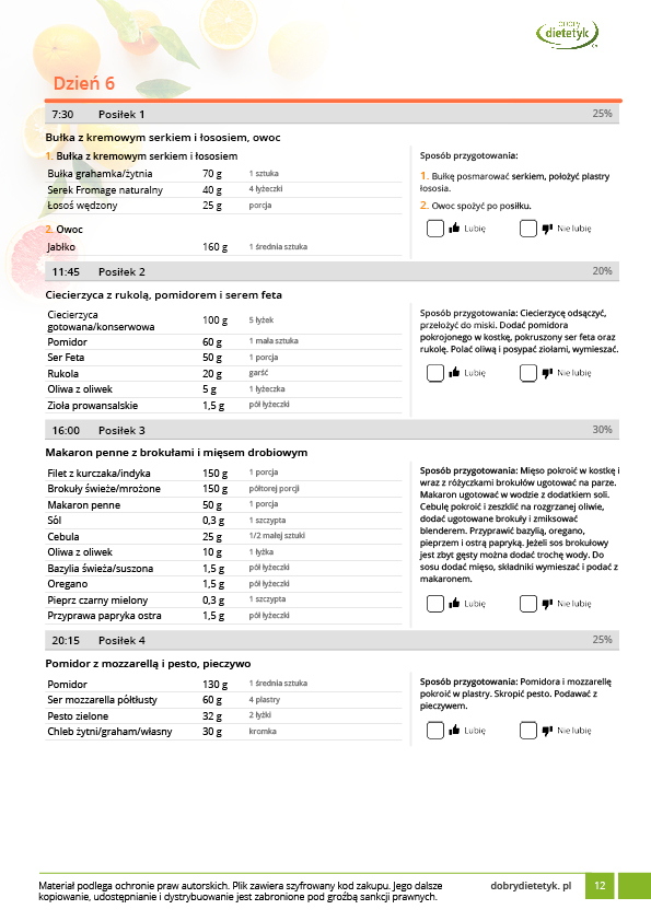 • w formie precyzyjnych jadłospisów wielodniowych (na każdy dzień miesiąca jest opracowany osobny jadłospis). Tutaj nie musisz zastanawiać się co zjeść każdego dnia, gdyż będziesz mieć dokładnie wszystko rozplanowane.